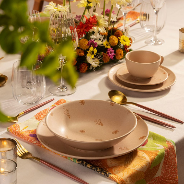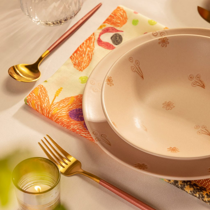 Efecto satinado, flores delicadas y un diseño que abraza. ¡Una vajilla que despierta los sentidos y transforma cada comida en un momento especial!