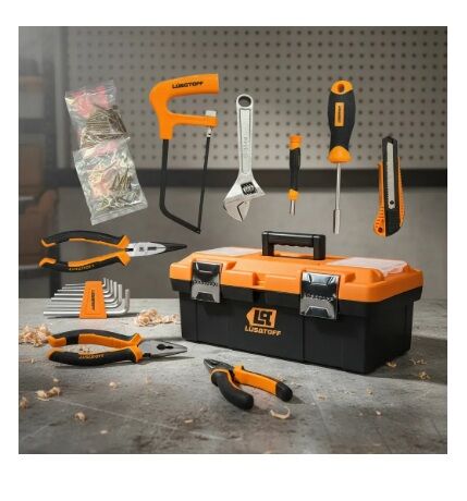 JUEGO DE HERRAMIENTAS MANUALES DE 46 PIEZAS LÜSQTOFF L4950 CON CAJA DE 17 • Caja de 17 con cierre metálico Herramientas de mano: • 1 pinza universal de 6 • 1 pinza de punta media caña de 6 • 1 llave ajustable de 6 (francesa) • 1 martillo galponero con cabo de fibra (para mayor absorción de impactos)...