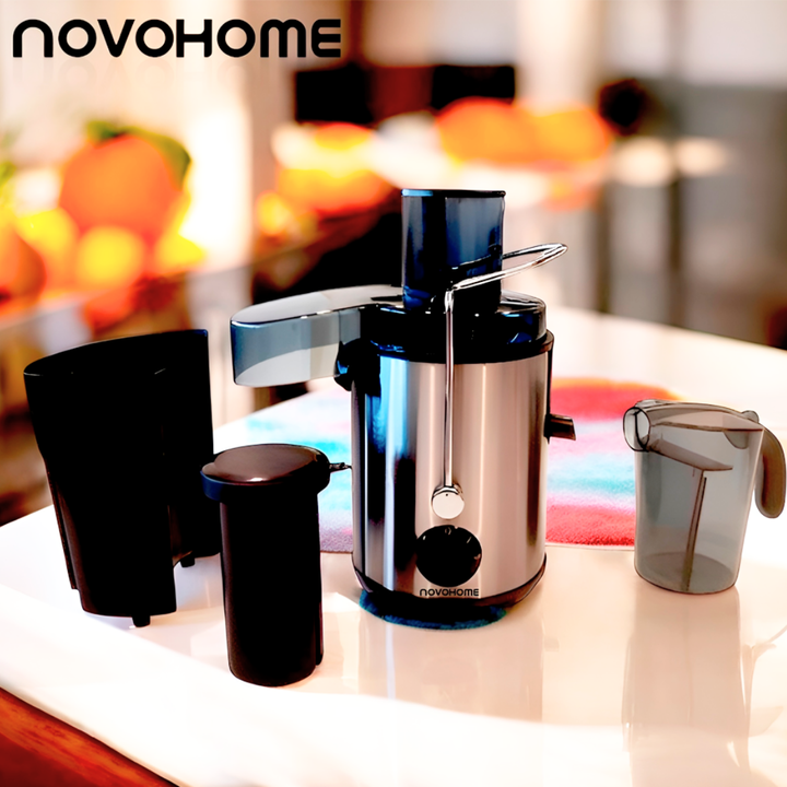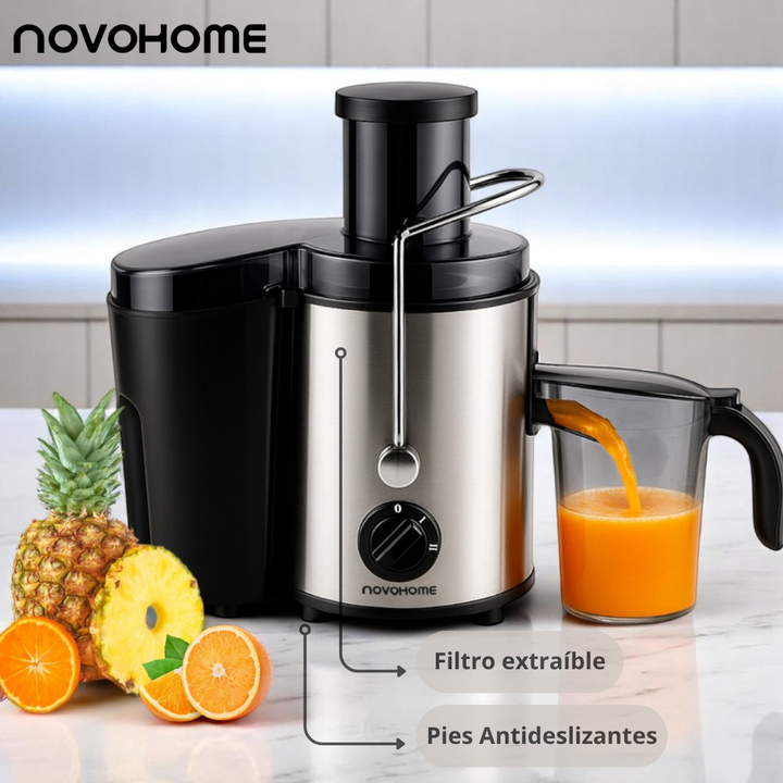 NOVOHOME JUICER MAKER SKU: NH-JM910 Con la juguera eléctrica de Novohome podrás disfrutar de jugos frescos, licuados suaves y shots energéticos sin pulpa, todo de forma simple y saludable. Elige los ingredientes y deja que el extractor haga el trabajo. Su potente motos exprime el jugo de frutas y ve...