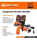 Compresor De Aire Mini A Bateria Portatil Daewoo Dw55-p Dw55-p Los compresores de aire Daewoo cuentan con tecnología coreana que asegura un bajo nivel de ruido, la incorporación de válvulas de seguridad por sobrecarga de aire y un funcionamiento impecable con una alta recuperación. • Potencia 12 V •...