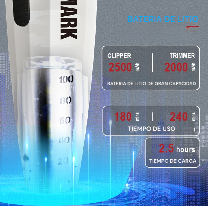 KIT CORTADORA DE PELO DETALLES CLIPPER +TRIMMER PROFESSIONAL WMARK SKU: NG-8632KIT CORTADORA DE PELO - Motor: Alta velocidad (8500/9000 RPM). - Cuchillas: Acero inoxidable de alta calidad. - Batería: Batería de litio recargable con una duración de hasta 120 minutos de uso continuo tras una carga com...