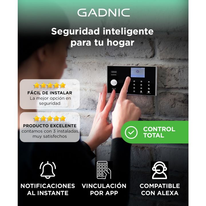 ¡Gadnic presenta su nuevo Kit de Alarma Domiciliaria! Este avanzado sistema de seguridad inalámbrico cuenta con un soporte de red de alarma que incluye un módulo 4G, permitiendo el uso de tarjetas SIM 4G, 3G o GSM. Así, podrás disfrutar de monitoreo y alarma en tiempo real, con opciones de SMS, llam...