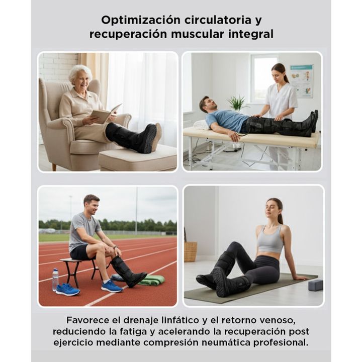 La botas de presoterapia se utilizan para producir masajes de compresión de aire para las piernas y la cintura. A través del inflado y desinflado secuencial e intermitente de las cámaras de aire, la terapia de compresión de aire es eficaz para promover una buena circulación sanguínea y linfática, me...