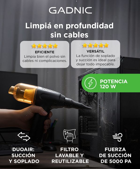 Descubrí la solución perfecta para mantener tu hogar, oficina e incluso tu automóvil impecables con nuestra potente y versátil máquina de limpieza de soplado y succión. Con una fuerza de succión de 5000PA y una potencia de 120W, esta máquina ofrece un rendimiento excepcional para una limpieza profun...