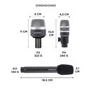 Acerca de Kit de Micrófonos Gadnic para Baterías ¡Experimenta la potencia y precisión en tus grabaciones y presentaciones en vivo con el Set de Micrófonos para Baterías! El Micrófono dinámico P2, ideal para bombo, amplificador de bajo y bombardón de bajo, ofrece una respuesta de frecuencia impresion...
