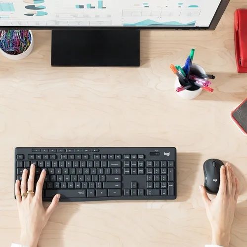 KIT TECLADO + MOUSE INALÁMBRICO LOGITECH MK295 SILENT TOUCH 920-009792 • MENOS RUIDO, MÁS CONCENTRACIÓN La combinación inalámbrica silenciosa Logitech MK295 incluye SilentTouch, una tecnología exclusiva de Logitech que elimina más del 90% del ruido producido. • CONFORT EN TAMAÑO NORMAL. El teclado d...
