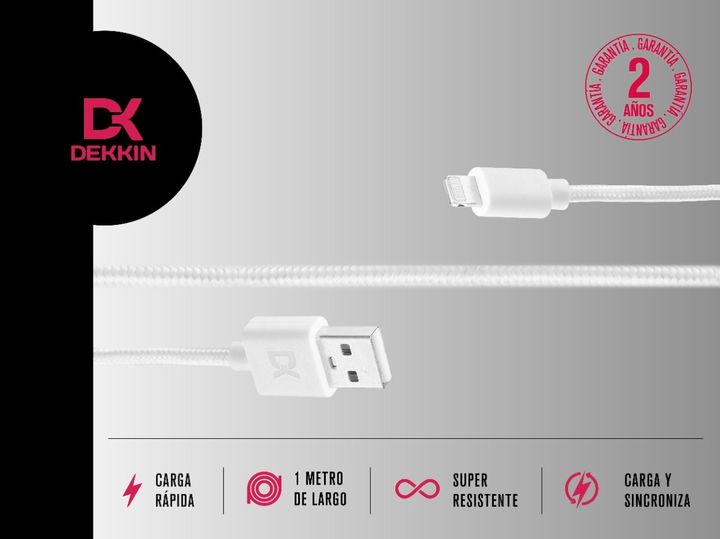 CARACTERÍSTICAS: - Doble puerto de entrada USB - Frecuencia: 50 Hz - 60 Hz - Entrada: 240V - 0.35 A - Salida: 5V - 2.0 A - Largo del cable: 1 m - Material del cable: Nylon trenzado, más duradero y resistente a los tirones - Entrada del cable: USB a Lighting - Material del conector: Aluminio CONTENID...