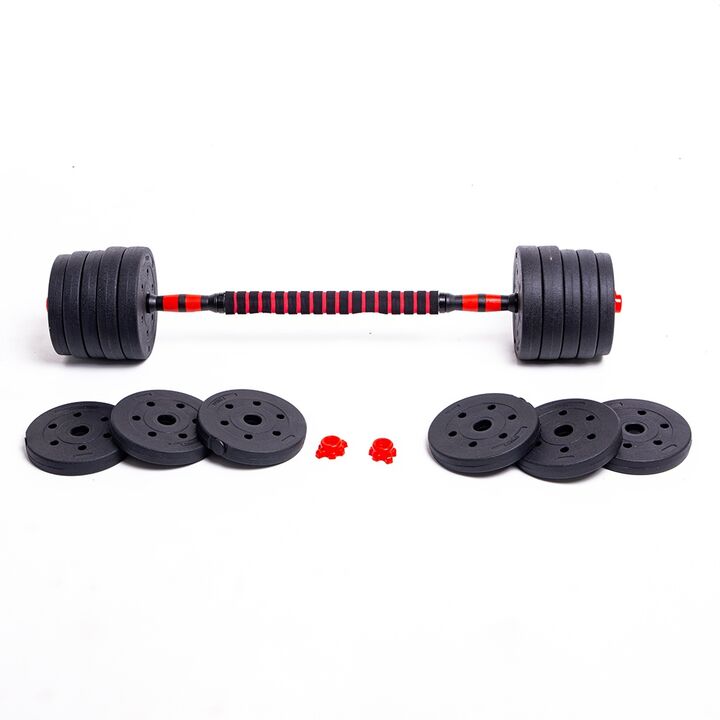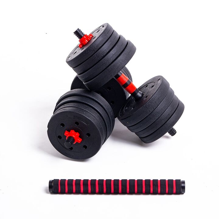 Kit de Mancuernas 25kg. Incluye: 2 Mancuernas de 47cm de largo. Una barra extensora de 40cm de largo. 8 Discos de 1.25Kg 4 Discos de 1.5Kg 4 Discos de 2Kg 4 Topes roscados. Datos logísticos: EAN: 7797481914447 Peso del producto: 25,3 Kg Medidas de la caja: 60 x 25 x 18 cm Peso de la caja: 26,3 Kg