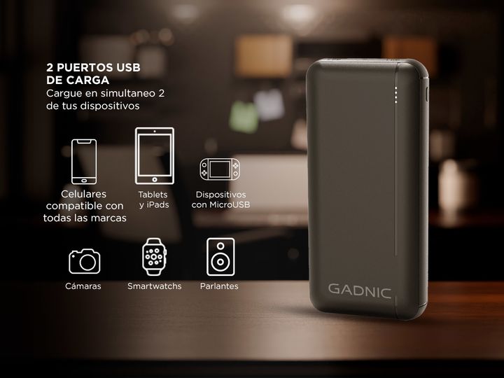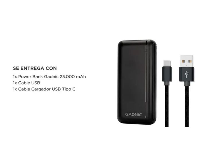 ¡GADNIC presenta su última generación de Cargadores portátiles! Con el Power Bank de 25.000mAh, tendrás energía de sobra para tus dispositivos. Este cargador portátil cuenta con dos puertos USB, permitiendo cargar simultáneamente tu smartphone y tablet de manera rápida y eficiente. Su gran capacidad...