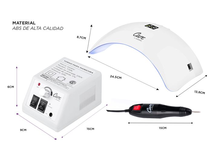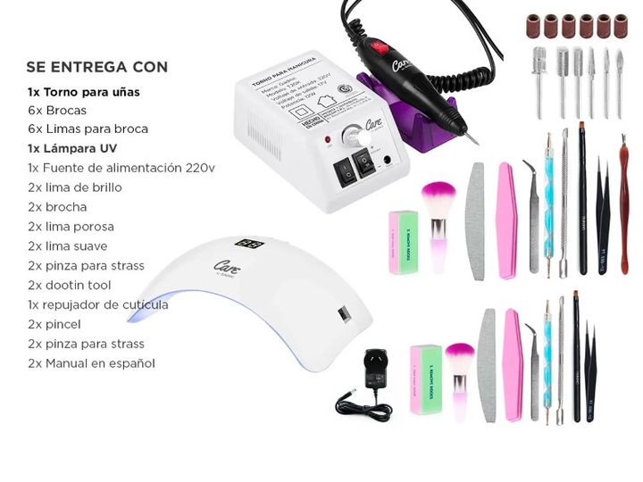 El Kit Para Uñas Gadnic combina herramientas avanzadas para lograr manicuras y pedicuras de calidad profesional. El Torno Gadnic T20K destaca por su precisión y potencia, ideal para limar, esculpir y dar forma a las uñas con facilidad. La Cabina UV LED de 48W asegura un secado rápido y uniforme de e...
