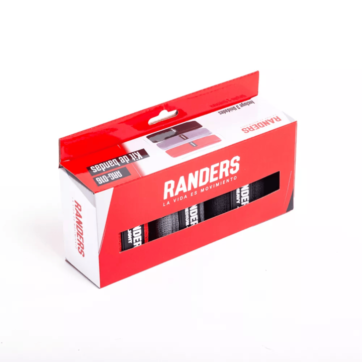 Kit Randers de 3 bandas elásticas resistencia de tela ARG-016 Material: Tela premium de alta resistencia. Interior antideslizante Incluye: 1x Banda Light 1x Banda Medium 1x Banda Heavy Medida de las bandas: 38 x 7.5cm. Bolsa de traslado. Garantía 6 meses