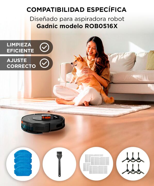Kit de mantenimiento para aspiradora robot Gadnic: El kit de accesorios de repuesto Gadnic ROB0516X permite realizar el mantenimiento periódico del robot aspirador. Incluye los repuestos esenciales para conservar un funcionamiento correcto en el uso diario. Recuperá la eficiencia de limpieza origina...