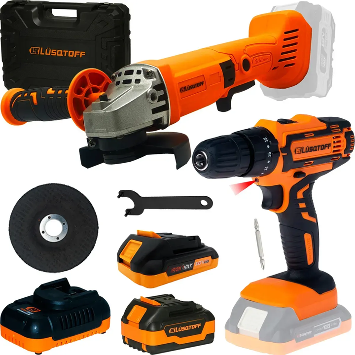 KIT DE TALADRO PERCUTOR Y AMOLADORA ANGULAR A BATERÍA LÜSQTOFF LPACK001-8 CON MALETÍN Y BATERÍAS LPACK001-8 Potenciá tu trabajo con el Set LPACK001-8, la solución definitiva para profesionales y hobbistas exigentes. Un kit inalámbrico versátil que te permite perforar, atornillar y amolar en cualquie...