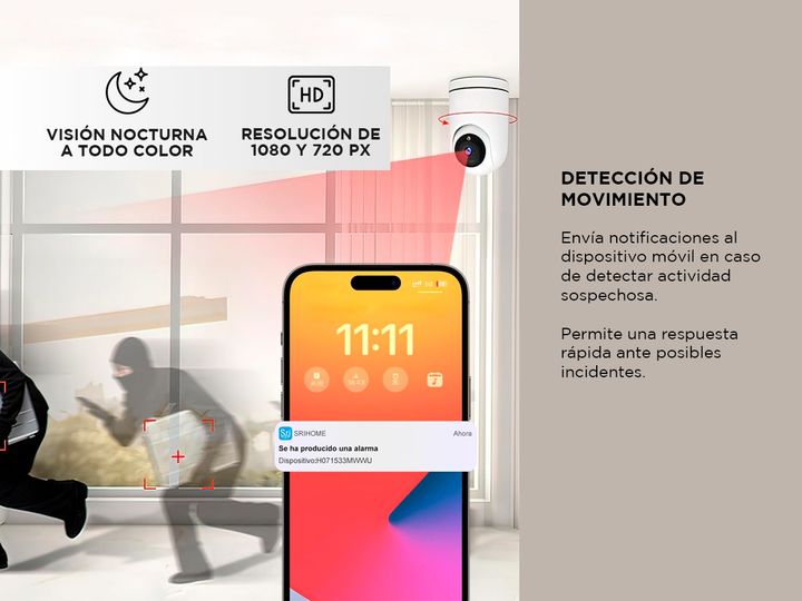 Especificaciones Cámara De Seguridad Srihome 1080p Audio Bidireccional - P2PSRI06 HD: 2MP, 1080P (1920*1080), H.264 Audio: micrófono y altavoz integrados, admite audio bidireccional Lente: Lente de 4 mm, apertura relativa 2.4, apertura F1.6 Sistema: Sensor: CMOS de escaneo progresivo de 1/2,9”, 2 me...