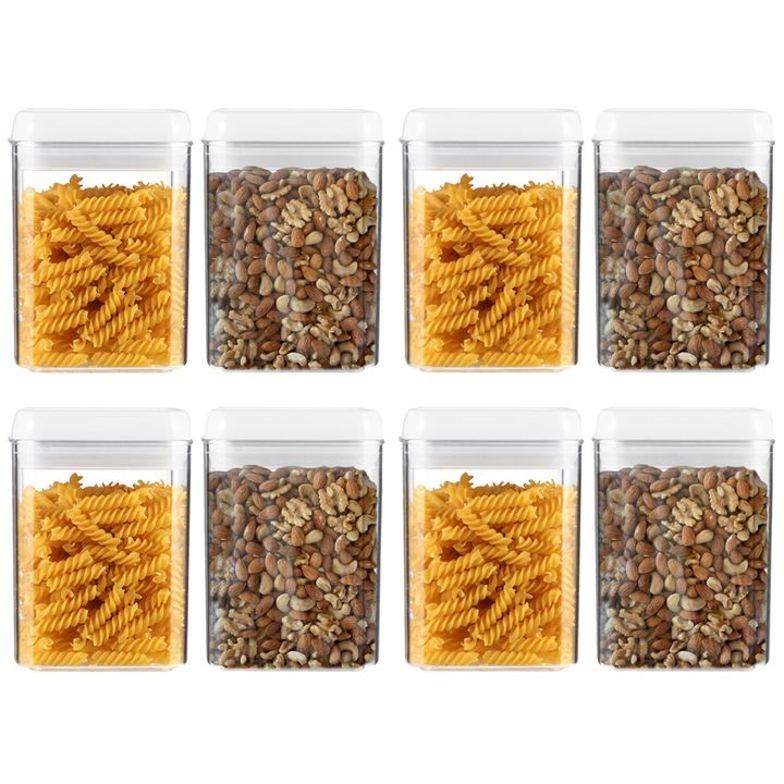 Los recipientes transparentes te permiten identificar el contenido. Hecho de material libre de BPA de alta calidad, nuestros recipientes herméticos son duraderos. El plástico de estos recipientes es muy claro, puede identificar el contenido sin abrirlos. Agarre hermético para mantener la comida seca...