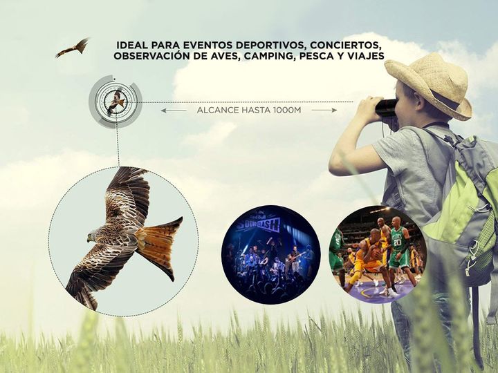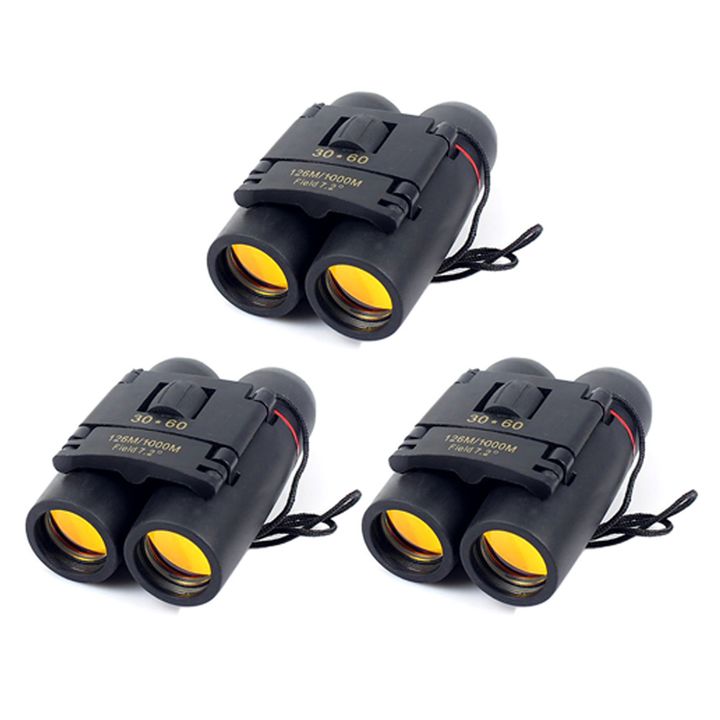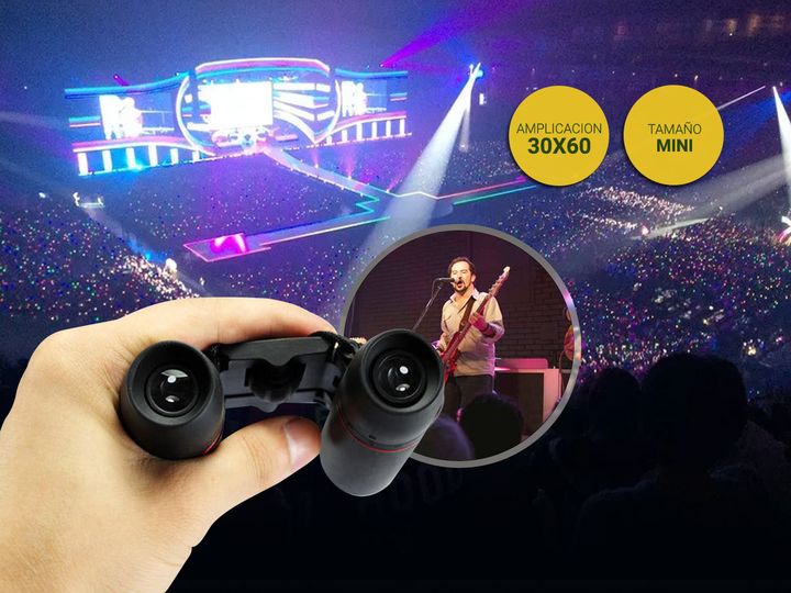 Especificaciones Mini Binocular Ampliación: 30x60 Campo: 7,2 ° Alcance: 126m / 1000m Diámetro de la lente: Aprox. 2.3cm / 0.9in Tamaño doblado: Aprox. 9 * 6 * 4cm (3.5 * 2.4 * 1.6in) Tamaño Desplegado: 9 * 10.5 * 4 cm (3.5 * 4.1 * 1.6in) Peso del artículo: 163g / 5,7 oz Tamaño del paquete: 11 * 8 * ...