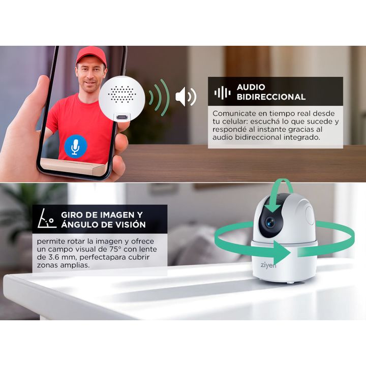 Cámara de Seguridad Ziyen 2MP con Visión Nocturna y App Móvil Vigilancia 24/7 con calidad HD Protegé tu hogar o negocio con imágenes claras en todo momento gracias a su resolución Full HD de 2MP. Ideal para monitoreo en interiores con alto nivel de detalle. Procesamiento inteligente y eficiente Inco...