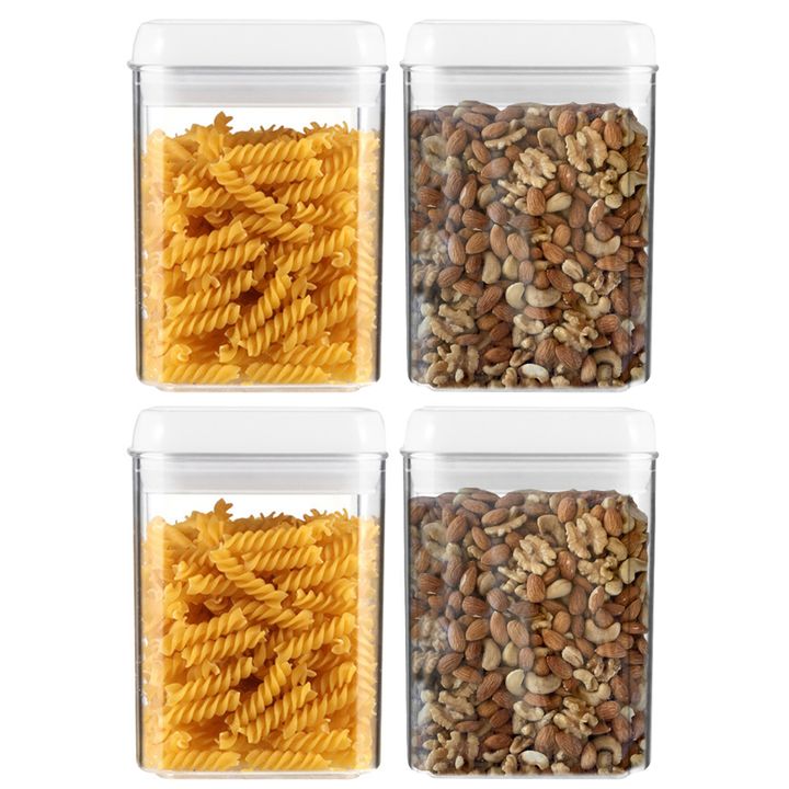Los recipientes transparentes te permiten identificar el contenido. Hecho de material libre de BPA de alta calidad, nuestros recipientes herméticos son duraderos. El plástico de estos recipientes es muy claro, puede identificar el contenido sin abrirlos. Agarre hermético para mantener la comida seca...