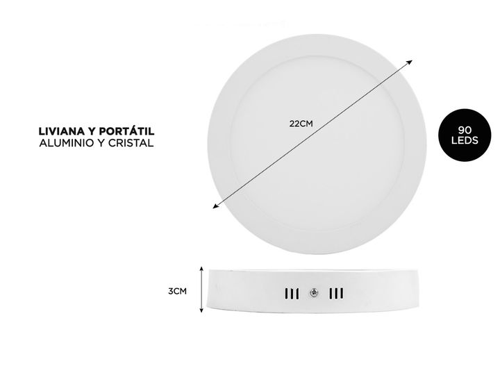 Especificaciones Plafon Lampara techo Led Gadnic PNL18 Calido Redondo 18W Especificaciones Técnicas: - Potencia: 18 W - Lumenes: 1278 - Alimentación: 200-240 V - 50/60Hz - Temperatura Color: 3000K - Hermeticidad: IP20 - Apertura 110 - Leds: 90 - Material: Aluminio
