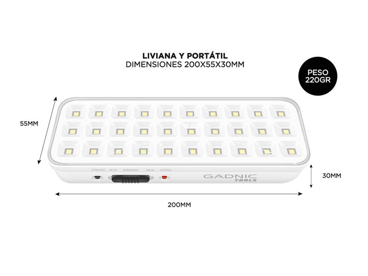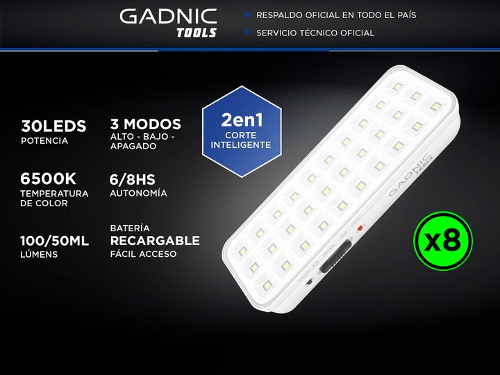 ¡GADNIC Tools presenta su nueva línea de Luces de Emergencia! Prácticas, versátiles y de alta calidad, estas luces son la solución ideal para la oficina, el hogar, camping y mucho más. ¡Descubrí nuestras innovadoras opciones que se adaptan a todas tus necesidades! Especificaciones Color: 6500K Poten...