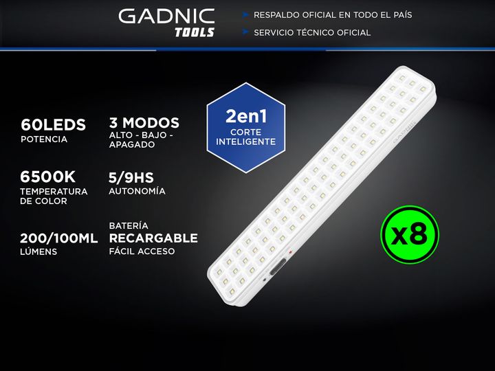 El Kit de 8 Luces de Emergencia Gadnic Tools L60 ofrece una iluminación de alta luminosidad con sus 60 LEDs y una temperatura de color de 6500K. Diseñadas para situaciones de emergencia, estas luces proporcionan una potente iluminación blanca fría. Son perfectas para el hogar, oficina o cualquier en...