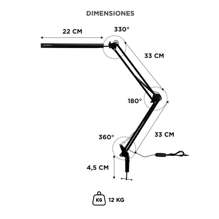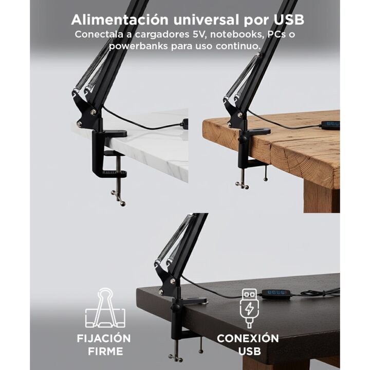 Luz Led Alimentación USB: Las lámparas LED son más eficientes energéticamente que las lámparas incandescentes tradicionales. El voltaje del adaptador USB incluido es de 5 V/2 A. La longitud del cable de alimentación es de 1,5 Metros. Diseño de Morsa y Brazo De Lampara Plegable: Ahorro de espacio con...