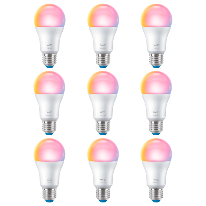 *Pack x9 ampolletas* Lampara Led Inteligente WiZ A60 E27 806 lm Full Color Transformá tu hogar con la bombilla inteligente WiZ A60. Gracias a su tecnología Wi-Fi integrada, no necesitás hubs ni dispositivos adicionales: solo conectala, descargá la app gratuita y empezá a controlar tu iluminación des...