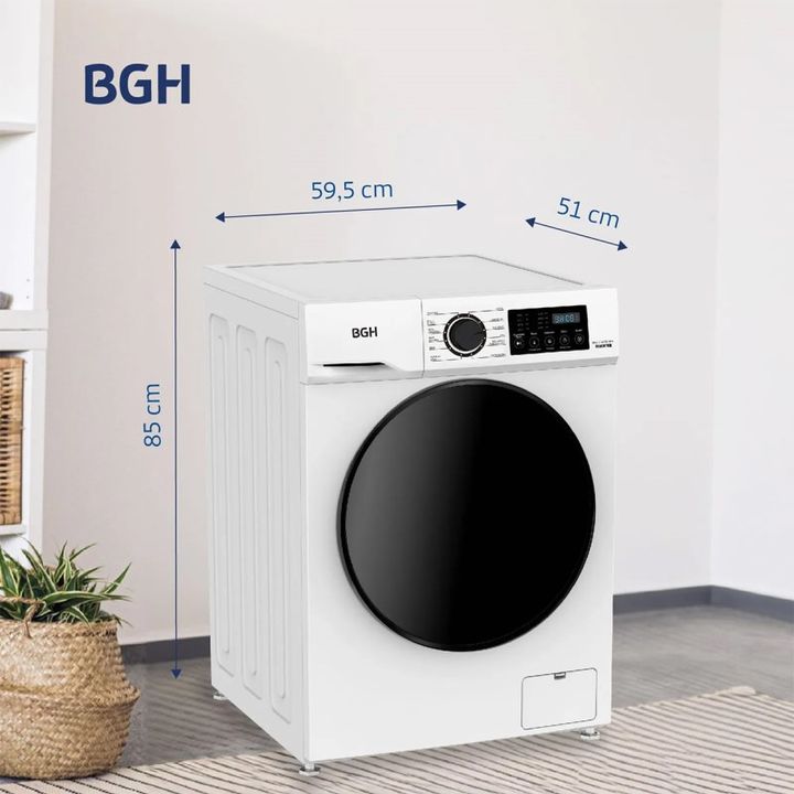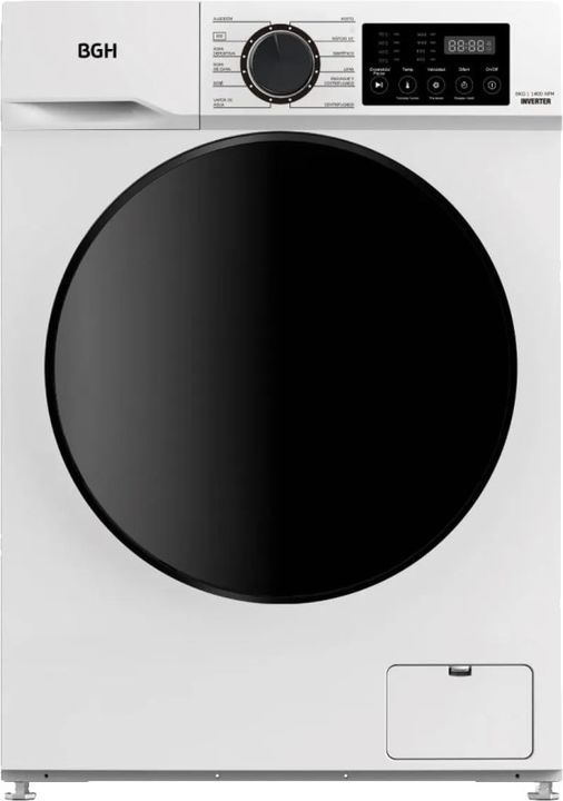 LAVARROPAS AUTOMATICO CARGA FRONTAL BWFE08W24AR INV 8K 1400 RPM BL BGH -Color Blanco -Capacidad 8 kg -Tecnología Inverter -Velocidad de centrifugado max. 1400 rpm -Alimentación 220-240V ~ 50 Hz - Potencia máxima 1750 W - Potencia de calentamiento de agua (entrada) 1600 W - Potencia de lavado (entrad...