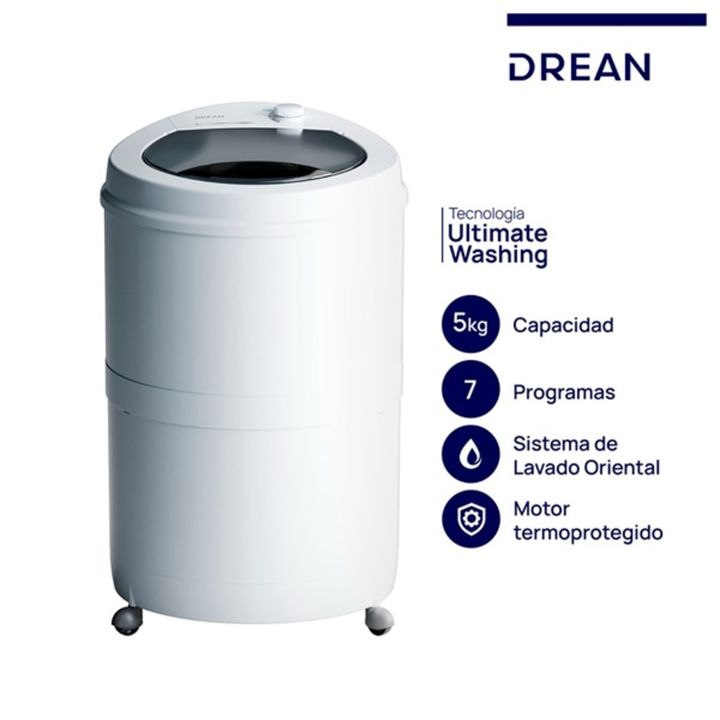 Lavarropas semiautomático de carga superior. Color blanco. Capacidad de lavado de 5 Kg. Posee 7 programas: Lana, Delicado, Sintético, Eco, Algodón color, Algodón, Intensivo. Sistema de lavado oriental que garantizan una limpieza más uniforme y un mayor movimiento y rotación de las prendas. Control s...