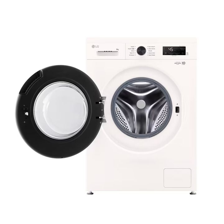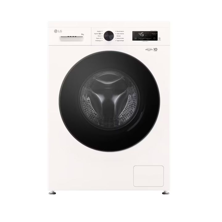 Marca: LG Modelo: WM80GWVFS6 Tipo de carga: Frontal Especificaciones Generales Capacidad de lavado: 8 kg Color: Blanco con puerta de cristal negro templado Motor: Inverter Direct Drive (sin correas, alta durabilidad) Tecnología de vapor: Sí sistema Steam que ayuda a eliminar alérgenos Panel de contr...