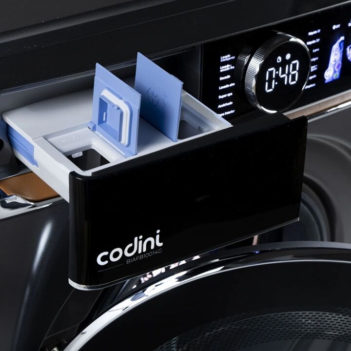 El lavasecarropas Codini BIAFB10014G es un equipo 2 en 1 (lava y seca) de carga frontal, ideal para optimizar espacio y facilitar el uso diario. Su capacidad de 10 kg de lavado y 7 kg de secado lo hace perfecto para familias, mientras que su centrifugado de 1400 RPM permite obtener prendas menos húm...