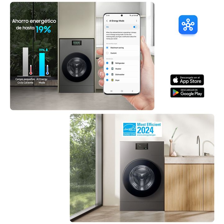 Lavado 22 Kg | Secado 15 Kg | 1100 RPM | AI WASH & DRY | LAVADO Y SECADO 98 | 7 Touch LCD | VRT+ | WIFI | SMARTTHINGS | TECNOLOGIA ECOBUBBLE | AIRWASH | DIGITAL INVERTER COMBINACIÓN TODO EN UNO ¡Ahorra espacio y seca la ropa lavada sin moverla! El diseño todo en uno integra a la perfección un lavarr...