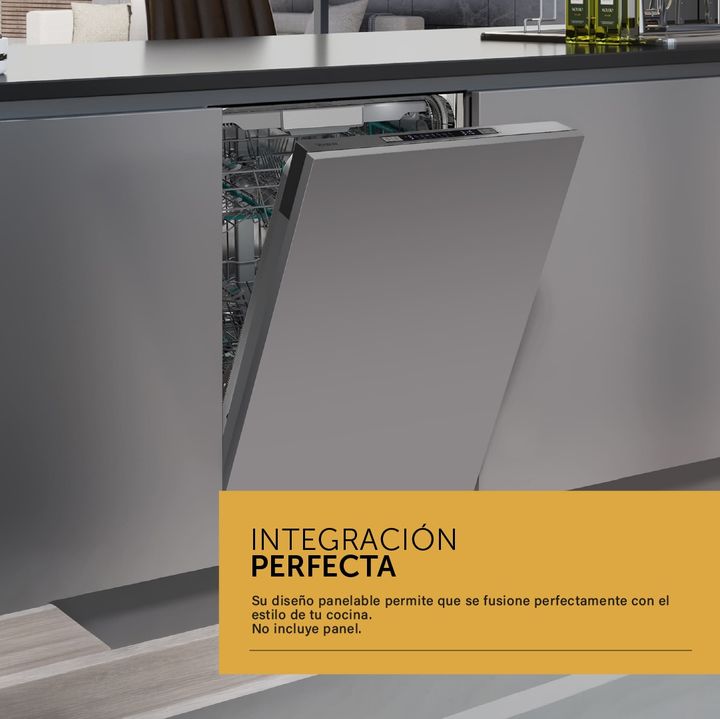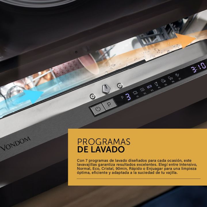 El lavavajillas Vondom tiene un diseño panelable para poder instalarlo de forma libre en la cocina, colocando un panel adherido a la puerta, conservando la estética del espacio. Cuenta con capacidad para 14 cubiertos. Además, tiene un cómodo display electrónico que marcará en todo momento el program...