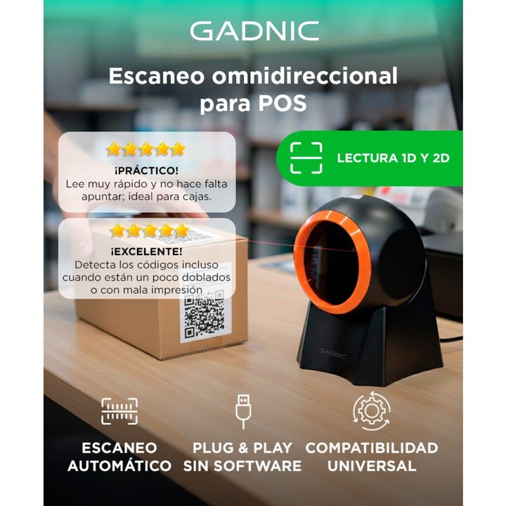 ¡Lector de Código de Barras Omnidireccional Gadnic con USB! ¿Buscas una solución eficiente y versátil para gestionar el inventario de tu negocio? No busques más, porque el Lector de Código de Barras Omnidireccional 1D/2D/QR con USB es la herramienta perfecta para agilizar tus procesos de escaneo y m...
