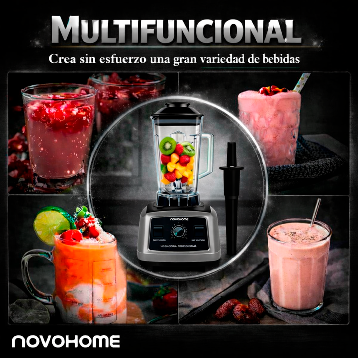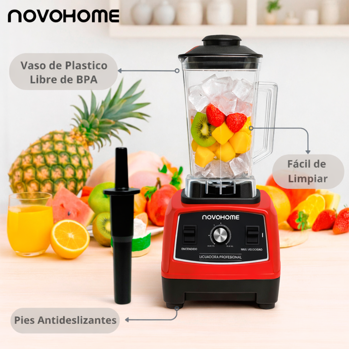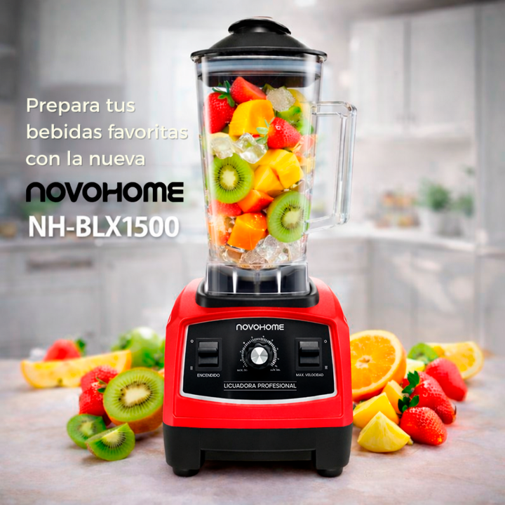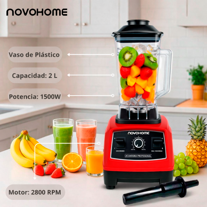 NOVOHOME LICUADORA 1500W 2 LITROS 10 NIVELES - Preparada para: Batir, mezclar, cortar y moler - Pica hielo, procesa harinas y logra preparaciones calientes - INCLUYE BASTON MEZCLADOR! RESISTENTE, DURADERA Y VERSÁTIL - Vaso de plástico irrompible libre de BPA - Cuchillas de acero inoxidable - Regulac...