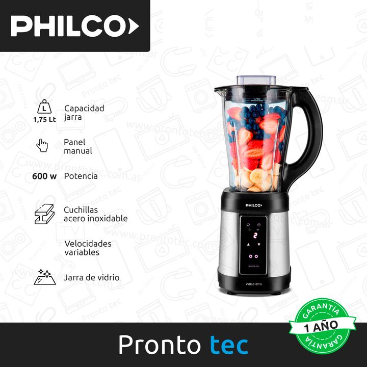 La licuadora de vaso Philco llevará tu experiencia en la cocina al siguiente nivel gracias a su potente motor de 600 watts y jarra de vidrio de 1,75 litros. La tecnología Smart blend ajusta automáticamente el licuado para resultados perfectos para todos tus batidos, jugos y más preparaciones, mientr...