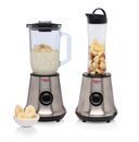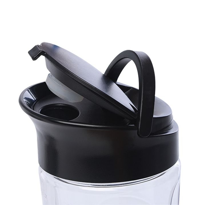 Vasos intercambiables: Jarra de vidrio de 1 litro de capacidad y botella portable de 600 cm³ ideal para uso deportivo o viajes.