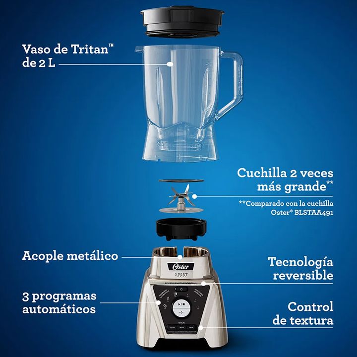 EL ACABADO PERFECTO PARA CUALQUIER MEZCLA Licuadora con control de textura: personaliza la consistencia de espesa a líquida. ¡Elige el de tu preferencia para tus recetas favoritas! ELIGE CÓMO TE GUSTAN TUS MEZCLAS Elige y crea tu mezcla ideal, ya sea que te gusten las sopas gruesas, los jugos suaves...