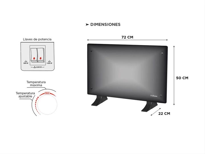 Liliana Ppv300 Calefactor Convector Vidrio Termico 2200w Modelo: PPV300 Características: Frente de vidrio termotemplado decorativo. · Termostato regulable que ahorra energía. · Patas para ser utilizado sobre el piso o soporte de fácil montaje en pared. · Tres niveles de intensidad de calor. · Gran c...