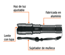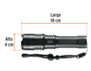 Distancia del haz de luz: 280 m Modos de iluminación: Alto, medio, bajo, intermitente y SOS Duración de carga de la batería: 3 horas (alto), 11 horas (bajo) Tiempo óptimo de carga: 8 h Diseño táctico