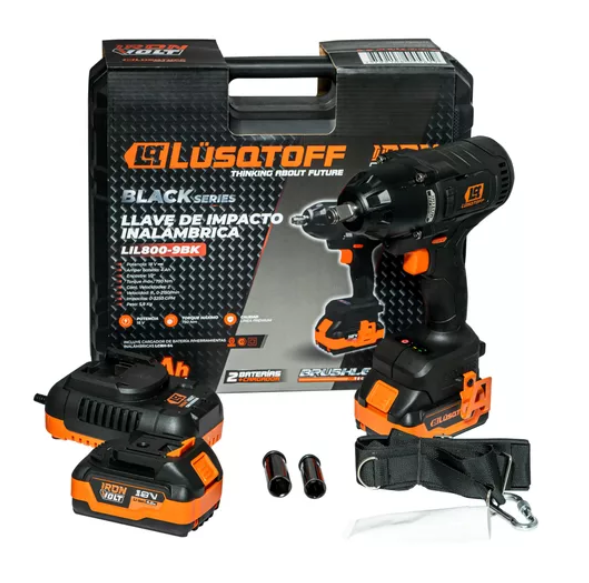 LLAVE DE IMPACTO INALAMBRICA LUSQTOFF BLACK SERIES LIL800-9BK La Nueva Llave de Impacto Inalámbrica Lusqtoff Black Series LIL800-9BK es una herramienta potente y versátil, diseñada para facilitar tareas de atornillado y aflojado en una variedad de aplicaciones. Con un motor de alta eficiencia, ofrec...