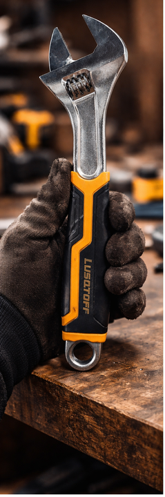 LLAVE FRANCESA AJUSTABLE DE 12 300MM LÜSQTOFF L3328 DE ACERO AL CARBONO • Construida en acero al carbono forjado con tratamiento térmico. • Terminación cromada semipulida. • Cómodo mango comfort grip. • Con orificio para colgar. Garantía 6 meses