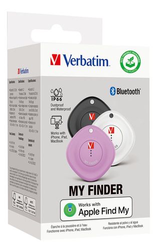 Localizador Bluetooth Verbatim My Finder x3 Negro, Blanco, Púrpura - 32132 Perder llaves, bolsos y otros objetos de valor es cosa del pasado gracias al localizador My Finder Bluetooth de Verbatim. Nuestro dispositivo localizador funciona exclusivamente con la aplicación Find My de Apple. Tan solo ti...