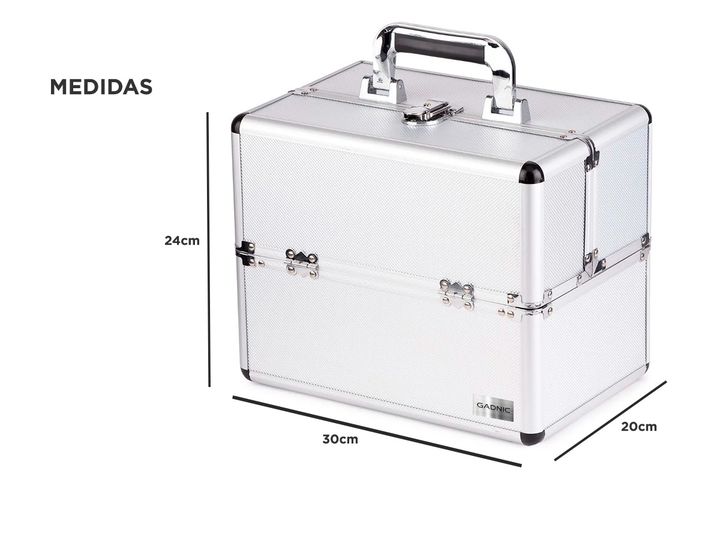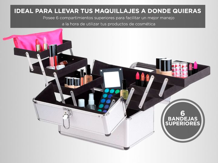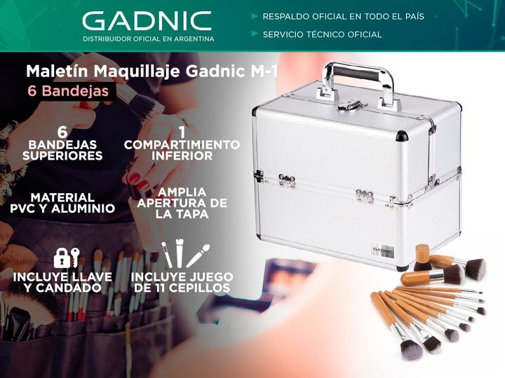 Acerca de Maletin Maquillaje Gadnic M-1 6 Bandejas Con este Maletín podrás llevar tus maquillajes a donde vos quieras. Posee 6 compartimientos superiores para facilitar un mejor manejo a la hora de utilizar tus productos de cosmética pero ademas de ser facil de transportar este maletín te permitirá ...