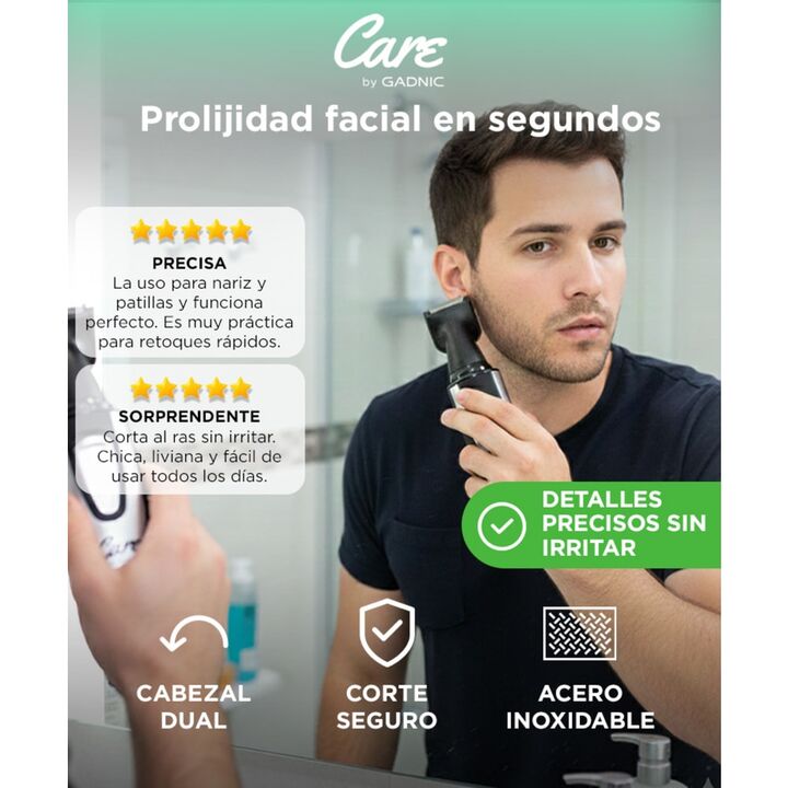 ¡Gadnic presenta su nueva linea de Recortadora de bello facial ! Esta cortadora hecha de acero inoxidable de alta calidad. Cortadora de pelo inalámbrico para orejas y nariz puede eliminar eficazmente y cómodamente el vello no deseado de la nariz, orejas, cejas, barba y cara. El diseño de un solo bot...