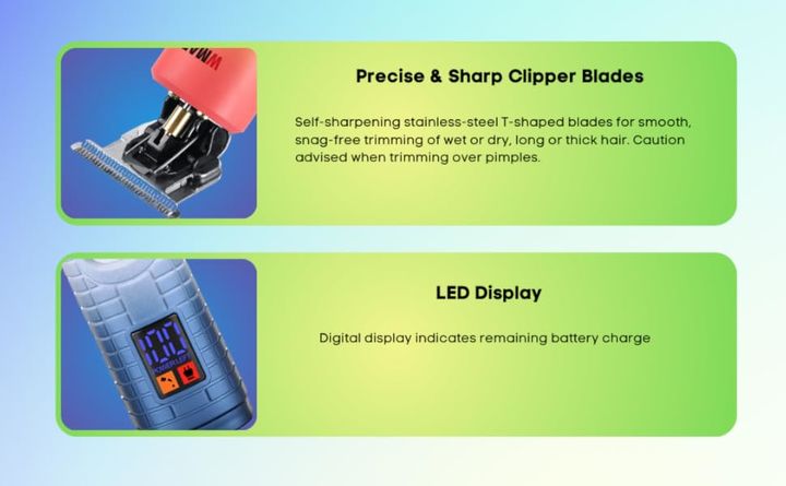 WMARK DETAIL TRIMMER CHARGED BY USB CABLE SKU VERDE: NG-319-GREEN SKU ROJA: NG-319-R SKU AZUL: NG-319BLUE La máquina de acabado Wmark NG-319 es una máquina de acabado profesional de alta calidad que ofrece una variedad de características y beneficios. Características: -Hoja de acero inoxidable con u...