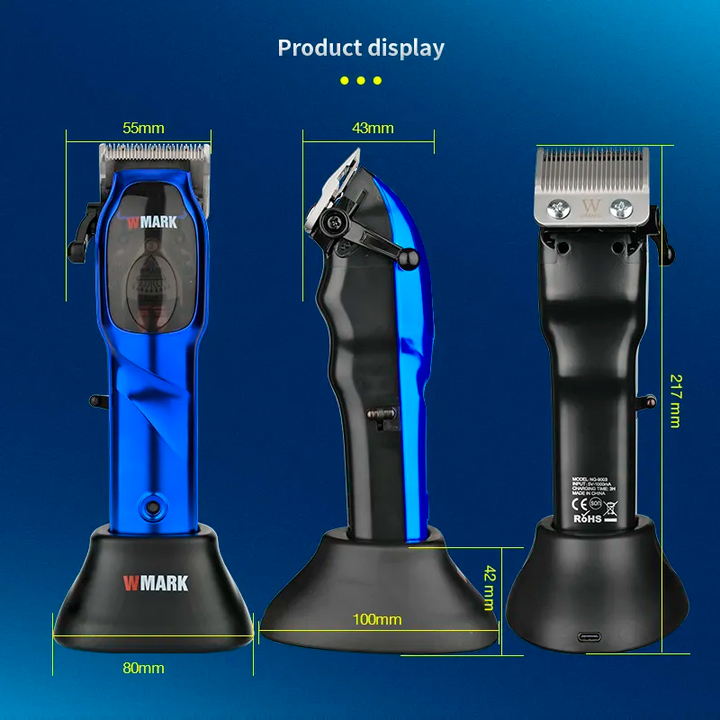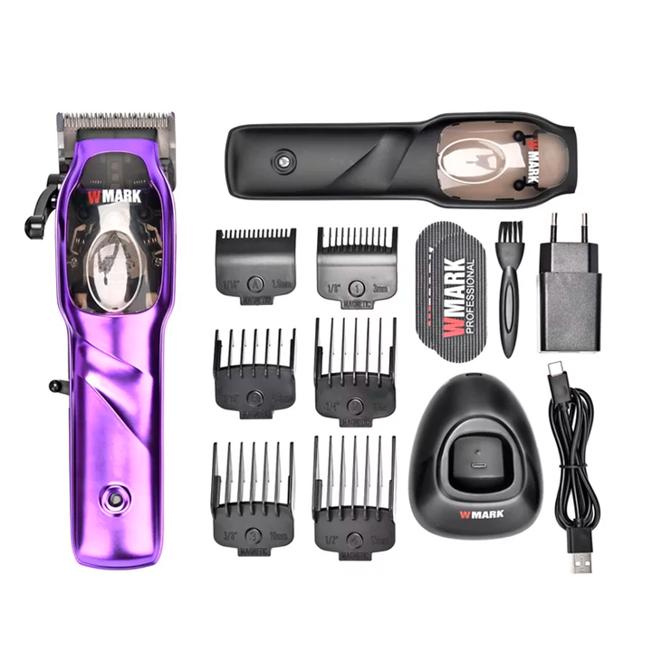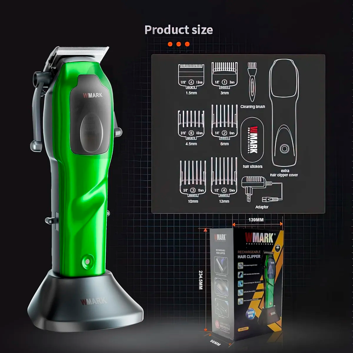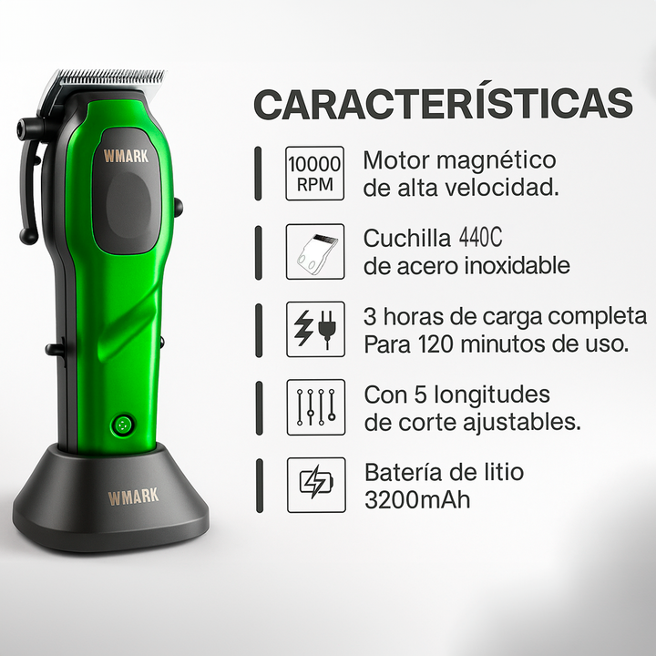 WMARK MAQUINA CORTADORA DE PELO INALÁMBRICA 10000 RPM SKU: NG-9003SET (Azul) SKU: NG-9003SETGREEN (Verde) SKU: NG-9003SETPURPLE (Morado) LA MÁQUINA WMARK 9003 CON SU DISEÑO ERGONÓMICO Y POTENTE MOTOR, PROPORCIONA CORTES DE CABELLO PRECISOS Y UNIFORMES. CUCHILLA DE ACERO INOXIDABLE DE ALTA CALIDAD GA...