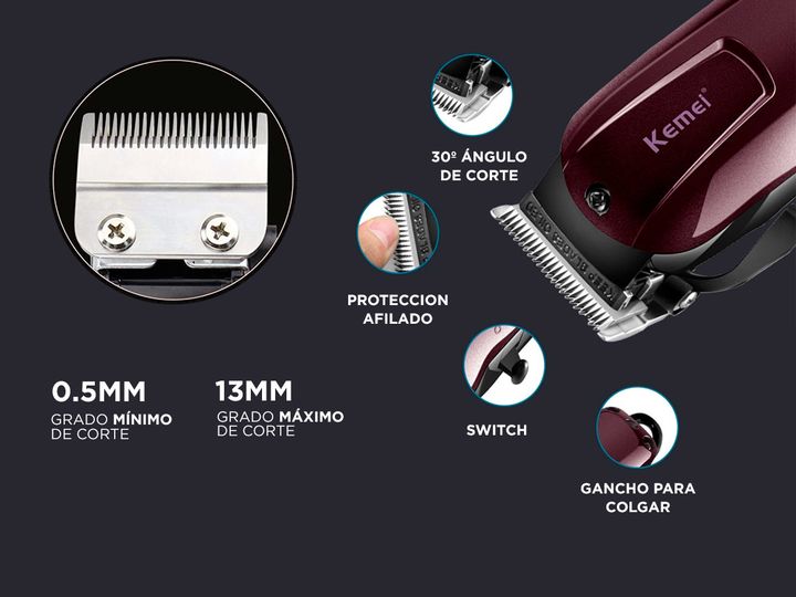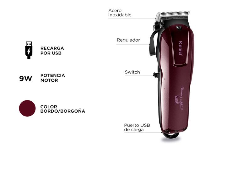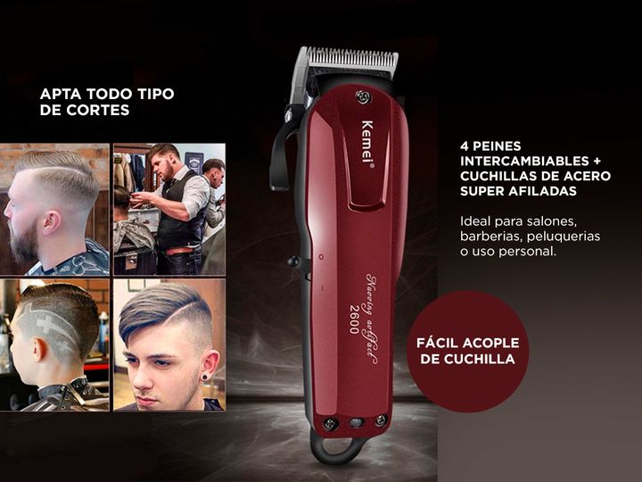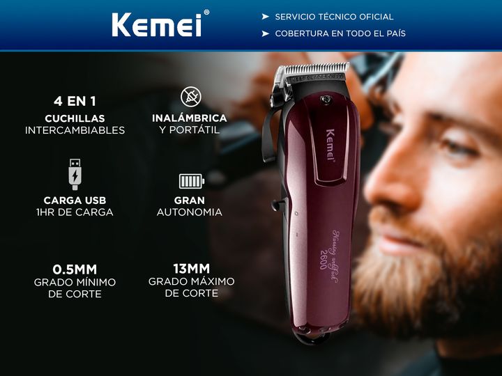 ¡Nueva Cortapelos Kemei KM-2600! Ideal para salones, barberías, peluquerías o uso personal, incluye 4 peines intercambiables y cuchillas de acero super afiladas Su gran autonomía te permitirá utilizarla por un tiempo prolongado sin preocuparte Con este cortapelos de Kemei podrás disfrutar de un prod...