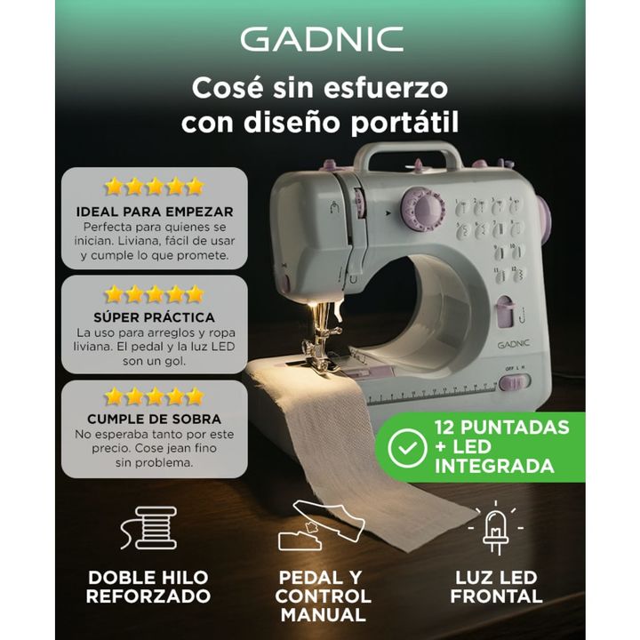Para aquellos que desean una máquina de coser versátil, liviana pero de tamaño completo, la Maquina de coser GADNIC es LA solución. Esta máquina de coser portátil GADNIC incluye las puntadas más populares para coser y remendar todos los días. Cuenta con 12 puntadas incorporadas únicas, que la hacen ...
