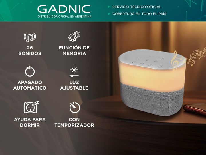Te presentamos nuestro nuevo producto Máquina de Ruido Blanco de 26 sonidos de Gadnic! Diseñado para brindarte un entorno relajante. El botón táctil ligero permite un control intuitivo y suave, para que puedas personalizar tu experiencia sonora con facilidad. Con su función de memoria, podrás record...